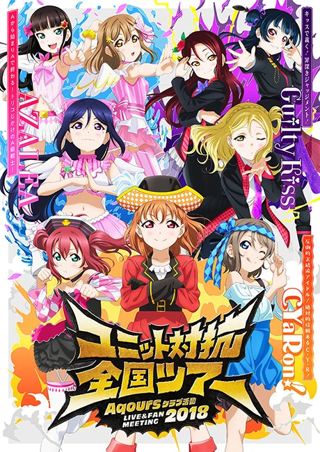 Love Live! Sunshine!! Aqours Club Activities LIVE & FAN MEETING 2018 Unit Battle Tour (ラブライブ!サンシャイン!! Aqours クラブ活動 LIVE & FAN MEETING 2018 ユニット対抗全国ツアー) was a series of live concerts and fan meetings performed by AZALEA, CYaRon! and Guilty Kiss from September 2018 to March 2019, as part of Aqours CLUB, the official Love Live! Sunshine!! Aqours Fan Club.