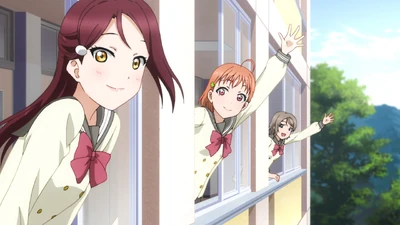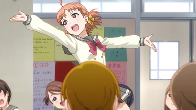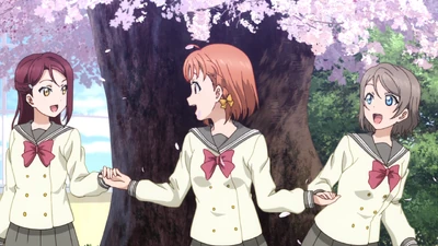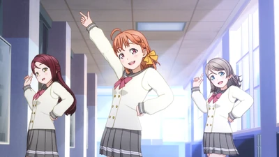 In the anime, Chika suddenly discovers Riko during her efforts to establish a school idol club. Unable to contain their excitement, Chika and You draw the bewildered Riko into their song about the beginning of their dreams. Later, there occurs the famous scene when Chika asks Riko to be a school idol and Riko refuses.