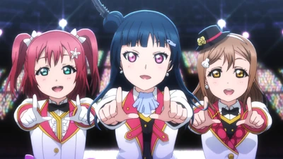 This song is played in season 1 of the Love Live! Sunshine!! anime during the Tokai regional qualifiers. After a pre-show performance depicting Aqours journey in a musical showtune style, this song brings the house down.